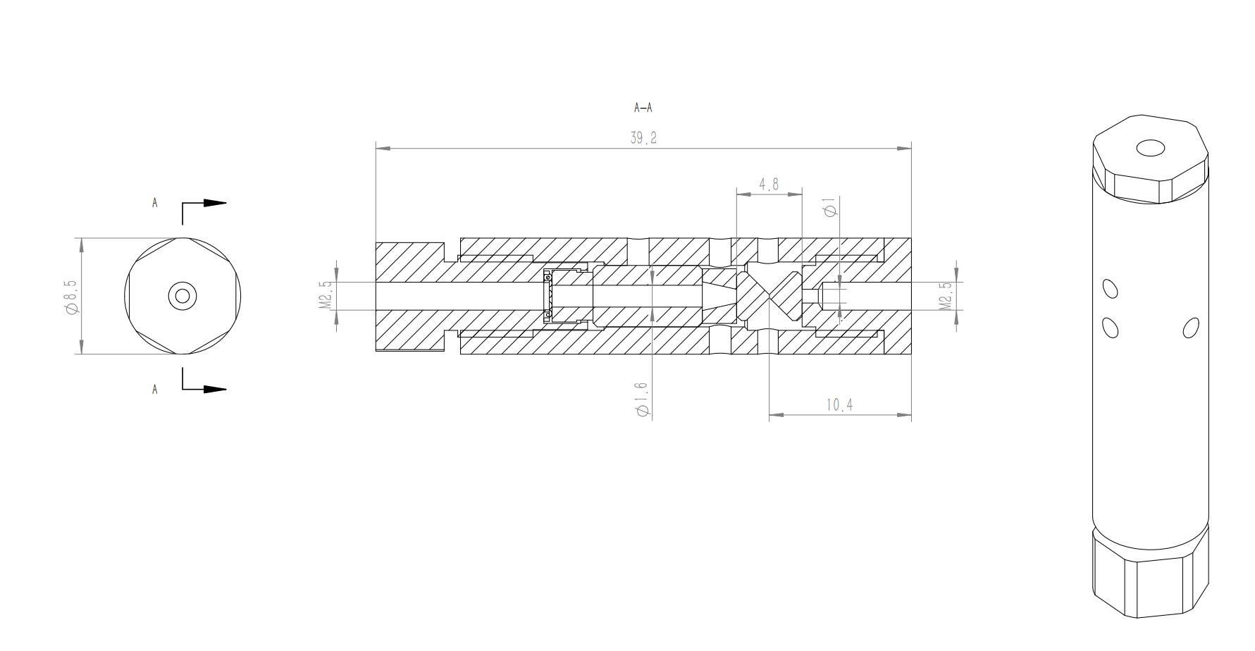 l装配设计高度42mm,外径8.5mm;